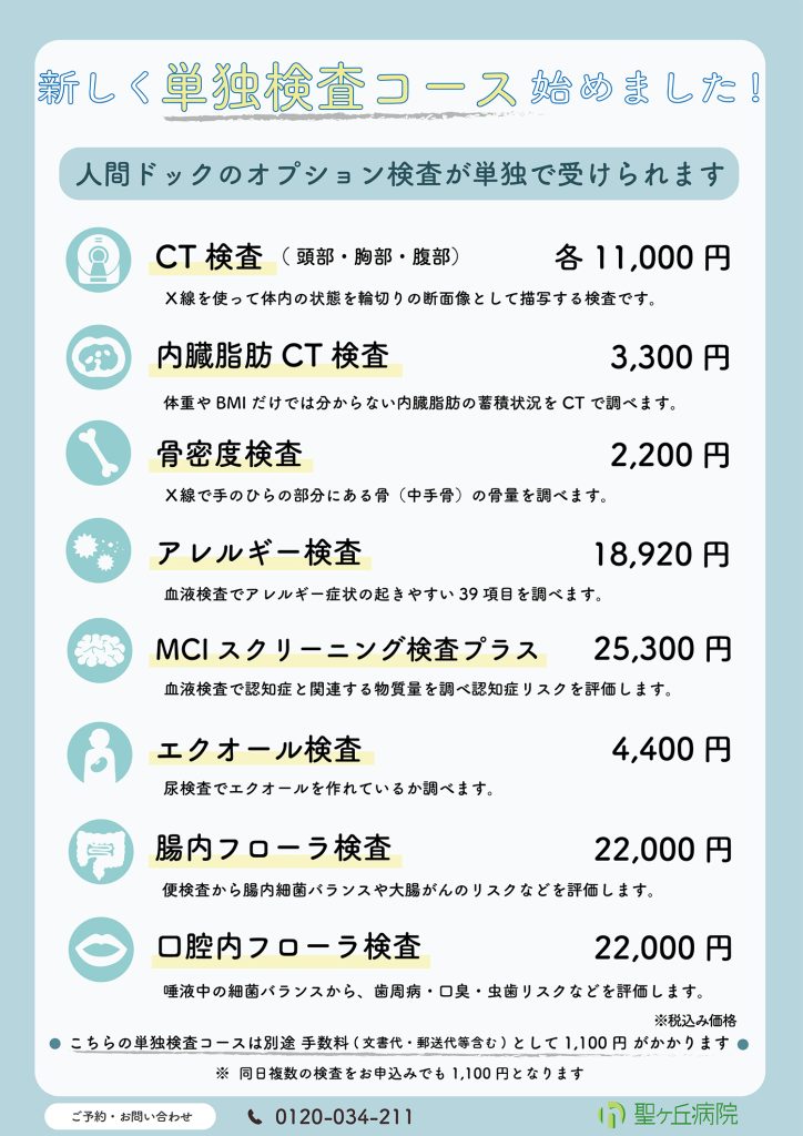 お知らせ 病院からのお知らせ 緩和ケアのお知らせ 人間ドック/健診のお知らせ 一般外来のお知らせ 採用情報 掲載年月一覧 年月から選ぶ 2026年1月 2025年12月 2025年10月 2025年9月 2025年8月 2025年4月 2024年8月 2023年6月 2022年12月 2022年4月 2025.12.12 健診/ドック 東京 多摩の聖ヶ丘病院|緩和ケア・人間ドック・内科 単独検査コース始めました 人間ドックで人気のある一部オプションを単独で検査できるコースを新たに始めました。 前の記事へ 次の記事へ